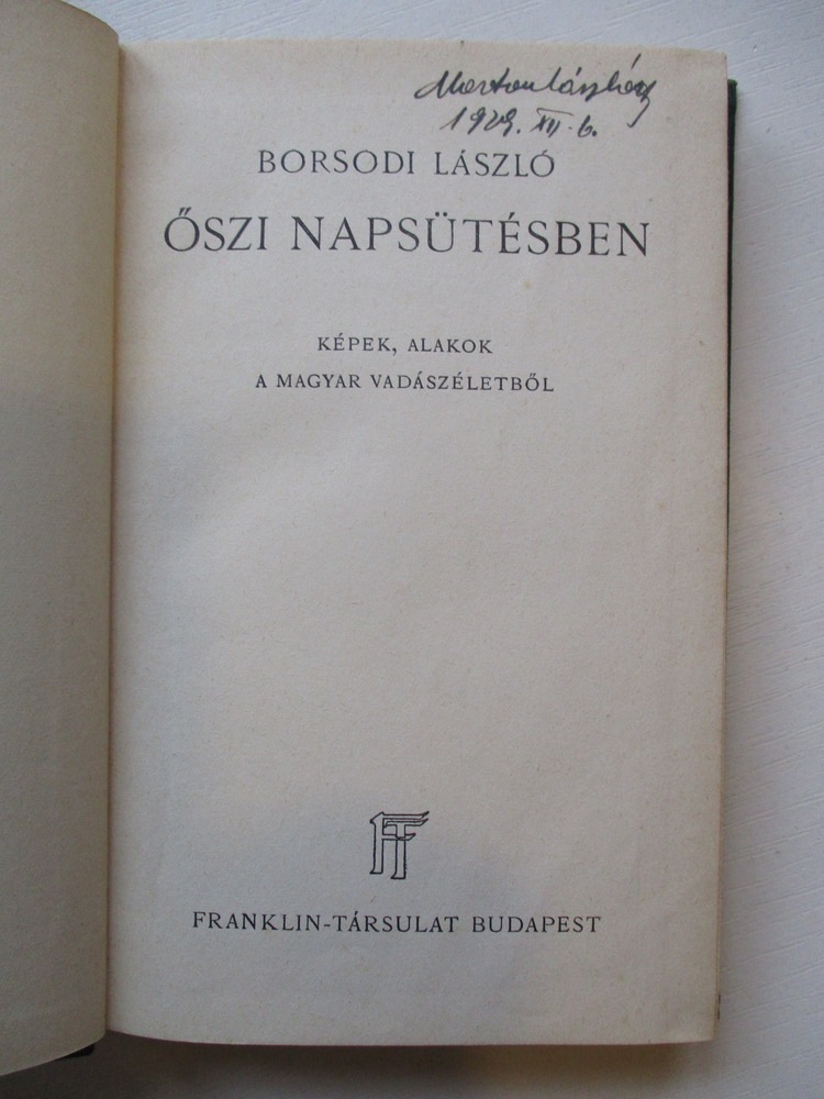 BORSODI László: Őszi napsütésben. Képek, alakok a magyar vadászéletből.
