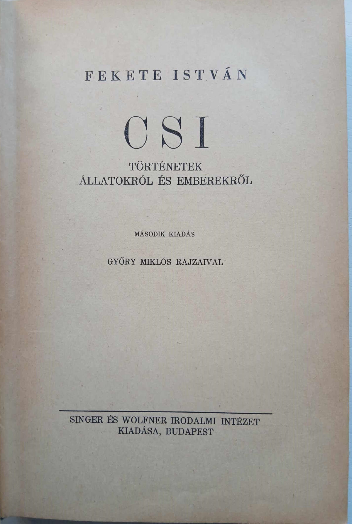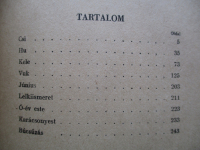 A nagyon szép régi, 1944-es háború előtti kiadás a címet adó kisregény mellett, tartalmazza a Hu, A Kele, A vuk című állatregényeket, valamint plusz még 5 nagyobb elbeszélést. 251 oldal, hangulatos, Győry Miklós illusztrációkkal. Kiadói félvászon kötésben, jó állapotban.