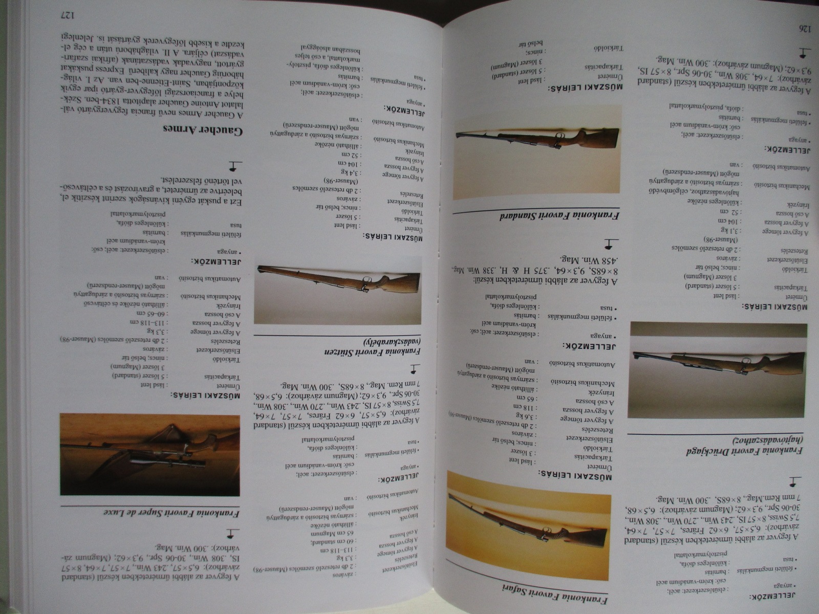A legtöbb vadász fegyvergyűjteményében van legalább egy puska vagy karabély. Könyvünk részletesen foglalkozik valamennyi korszerű, közismert golyós puskával és karabéllyal, ebben az olvasó megtalálja a legtöbb jelenlegi gyártmányt, modellt és űrméretet.Ez az enciklopédia a korszerű golyós puskák és karabélyok igazi katalógusa, több mint 400 színes fénykép-illusztrációval. A szerző - a lőfegyverek kialakulásától kezdve - részletesen ismerteti a fegyverek műszaki vonatkozásait, kezelésüket és az azokkal összefüggő biztonsági kérdéseket. Teljes és részletes magyarázatát adja a fegyverek olyan műszaki vonatkozásainak, mint pl. a biztosítókarok és a reteszelőszerkezetek. Ismerteti a puska- és karabélylőszerek típusait is. Az enciklopédia legnagyobb része a golyós puskák és karabélyok leírását és műszaki jellemzőit tartalmazza.