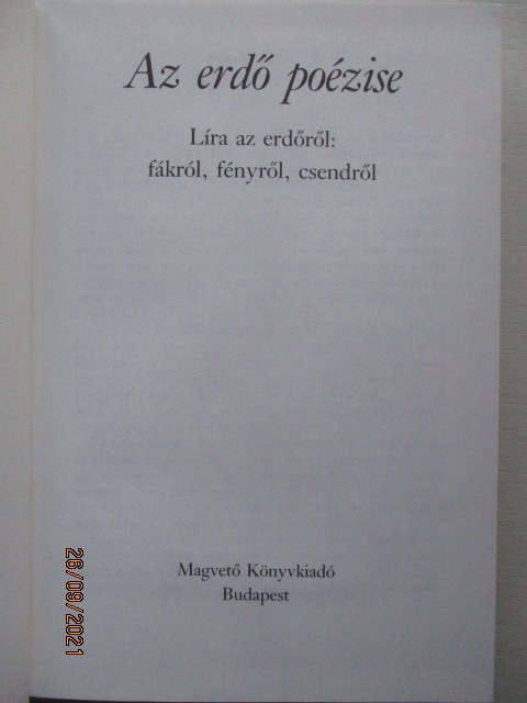 Líra az erdőről, fákró, fényről, csendről. 1993 Magvető Kiadó. 285 oldal, keménytáblás, egészvászon kötésben, színes táblaképpel. Jó állapotban.
