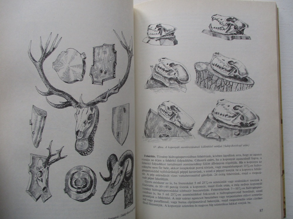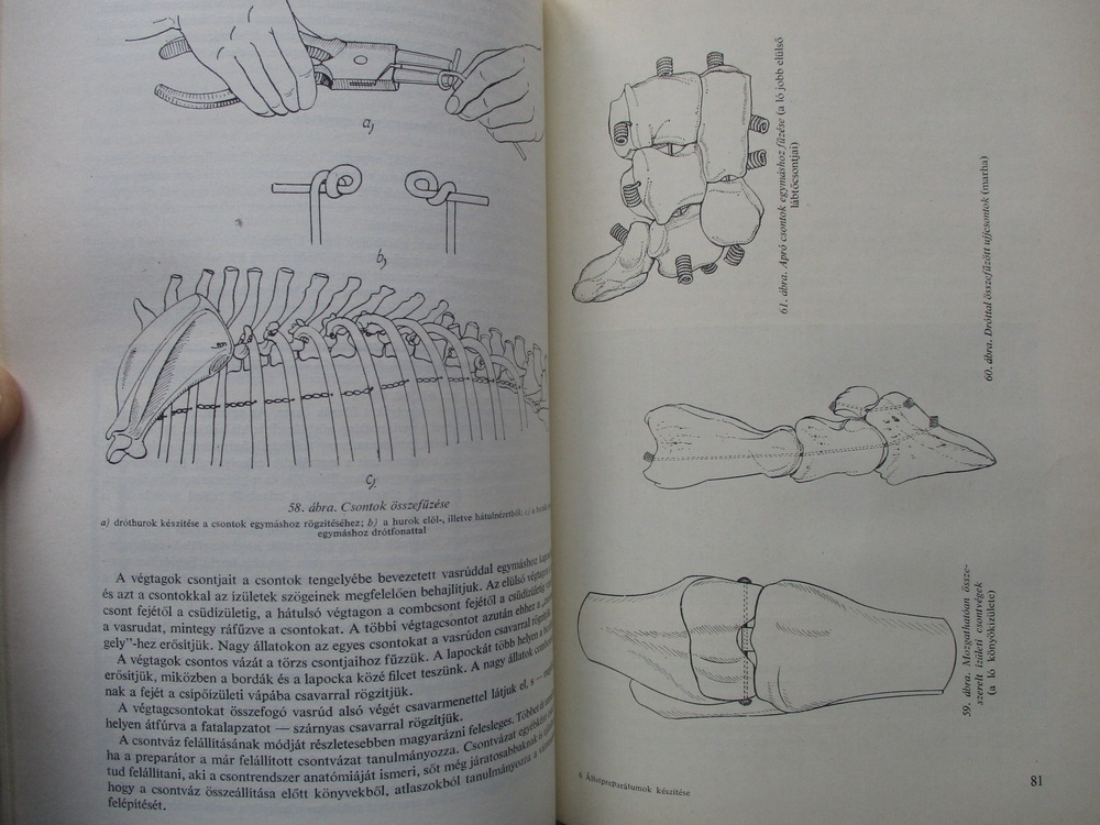Az emlősök, madarak, halak, kétéltűek, hüllők és ízeltlábúak konzerválásának módja mellett foglalkozik, a trófeák kikészítésével, a vad nyúzásával, montírozásával, koponyák macerálásával, kitöméssel, preparálásával, gyűjtemények készítésével is. A második rész csontpreparátumok száraz-készítmények, nedves készítmények készítését is tárgyalja.