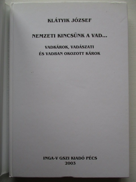 A vadkárokkal, részleteiben foglalkozik. Rendkívül hasznos könyv, minden vadászatra jogosultnak. 256 oldal, ábrákkal, szemléltető képekkel. Jó állapotban.