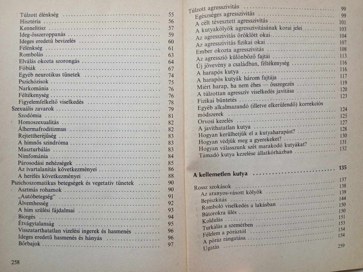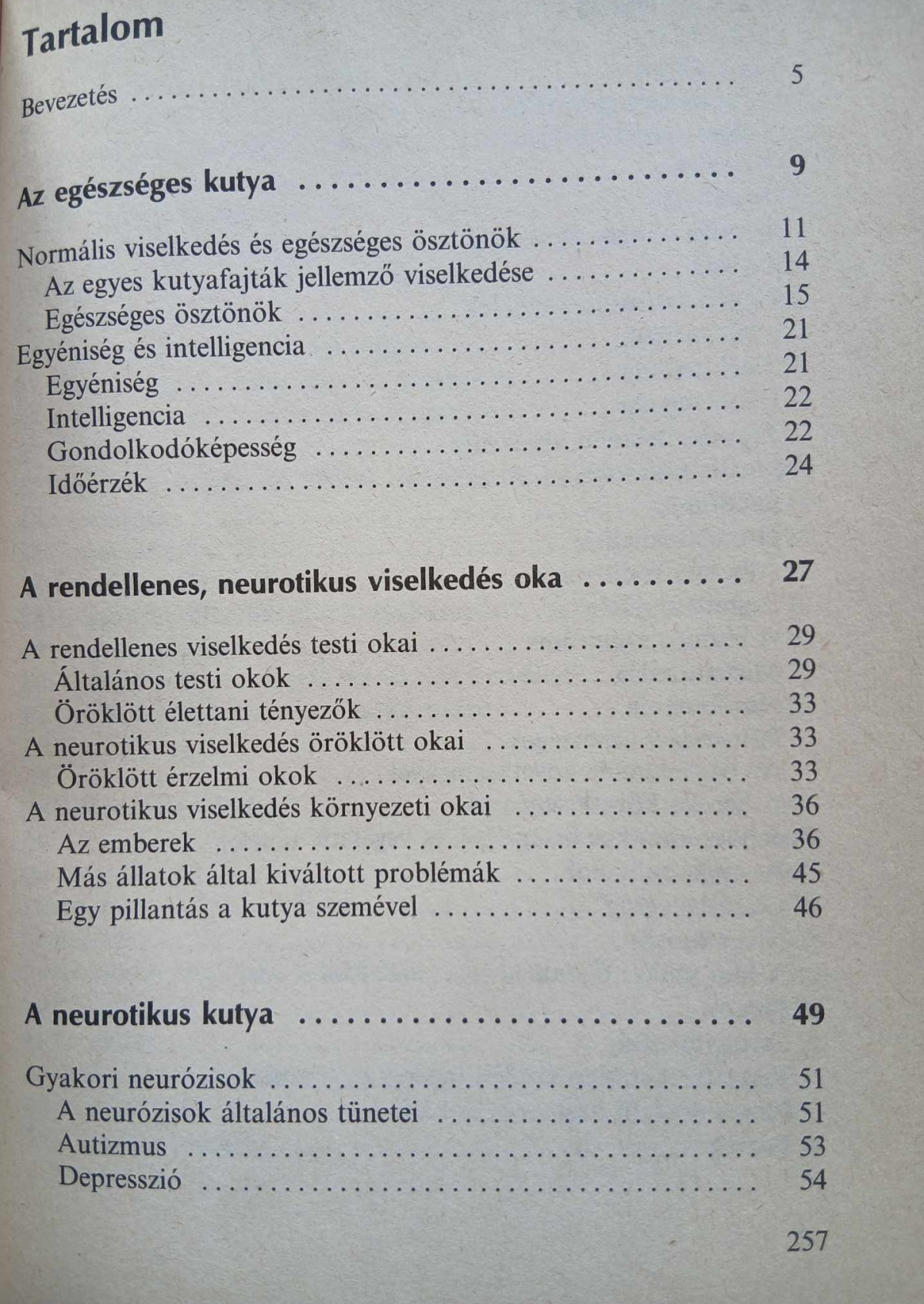 Arra az alapvető kérdésre, hogy „Mitől neurotikus a kutya?" természetesen azt válaszolja: „A gazdájától!" Nem azért, mintha a gazdák gonoszak vagy betegek lennének (mindig), csak nem figyelnek eléggé, esetleg túlzott szeretetükkel rombolnak, talán olyan dolgokat várnak ebüktől, ami nem állati. Ha Ön tanácstalan, netán valamilyen lelki eredetű tünet felmerül kutyájánál olvassa el ezt a remek könyvet.