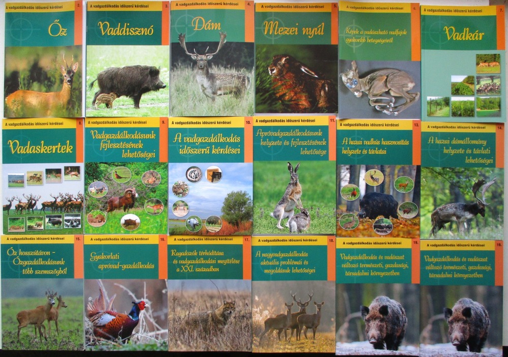 Népszerű szakmai előadások, konferenciák, továbbképzések különösen időszerű vadgazdálkodási témákban. Az 50-120 oldalas kötetek behatóan foglalkoznak az adott vadfajjal, valamint a vadgazdálkodás kérdéseivel, problémáival, és az azokra javasolt megoldásokkal. Megjelent 2003- és 2022 között. Új, olvasatlan állapotú sorozat, a 12. rész hiányzik. Összesen 17 db. szakmai könyv.