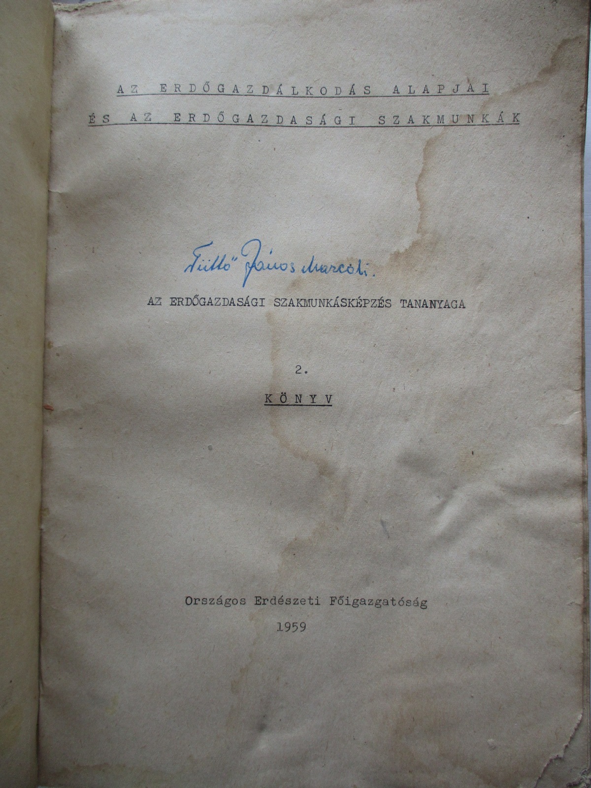 1959 Orsz Erd. Főig. 536 A/4 oldal, sokszorosított. 2000 példányban jelent meg. Foltos, kopottas, sérült borító, hiánytalan.