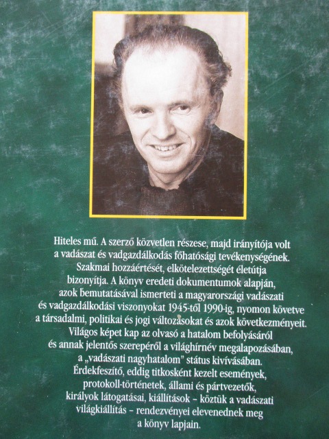 "Hiteles mű. A szerző közvetlen részese, majd irányítója volt a vadászat és vadgazdálkodás főhatósági tevékenységének. Szakmai hozzáértését, elkötelezettségét életútja bizonyítja. A könyv eredeti dokumentumok alapján, azok bemutatásával ismerteti a magyarországi vadászati és vadgazdálkodási viszonyokat 1945-től 1990-ig, nyomon követve a társadalmi, politikai és jogi változásokat és azok következményeit Világos képet kap az olvasó a hatalom befolyásáról és annak jelentős szerepéről a világhírnév megalapozásában, a „vadászati nagyhatalom" státus kivívásában. Érdekfeszítő, eddig titkosként kezelt események, protokoll-történetek, állami és pártvezetők, királyok látogatásai, kiállítások - köztük a vadászati világkiállítás - rendezvényei elevenednek meg a könyv lapjain."